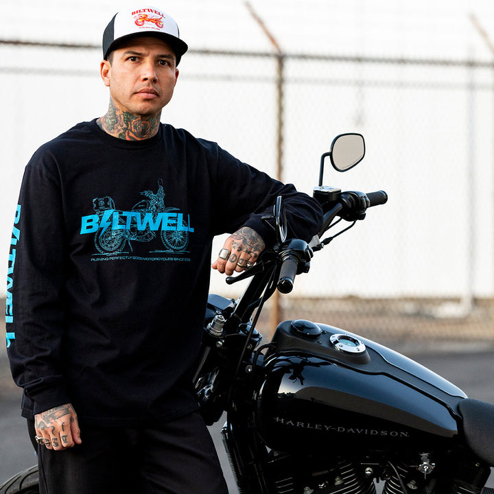 Camiseta de manga larga ADVXL Long Sleeve captura el espíritu custom con el retrato del Sporty ADVXL construido por Rouser, fotografiado por @tcornelius_. Fabricado en algodón 100% pre-encogido de 6 oz, ofrece un balance perfecto entre suavidad y durabilidad.