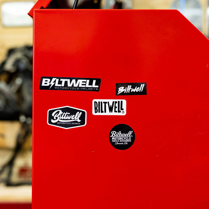 Nunca hay demasiadas calcomanías. Dale personalidad a tu caja de herramientas, casco, moto o incluso al Chevy Beretta de tu mamá con el set Biltwell Stickers 2023.