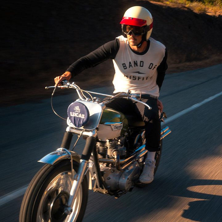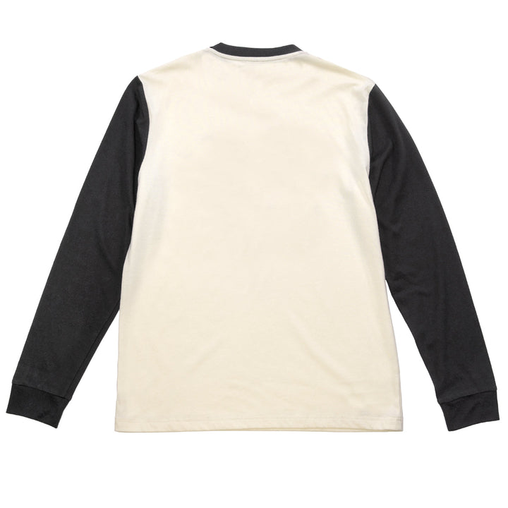 Sus mangas con patrón yarn-dye a rayas, los puños acanalados extendidos y el arte clásico serigrafiado en el pecho la convierten en una pieza versátil que combina autenticidad y estilo retro. El ajuste relajado con costuras laterales asegura un fit cómodo y moderno, ideal para cualquier ocasión.