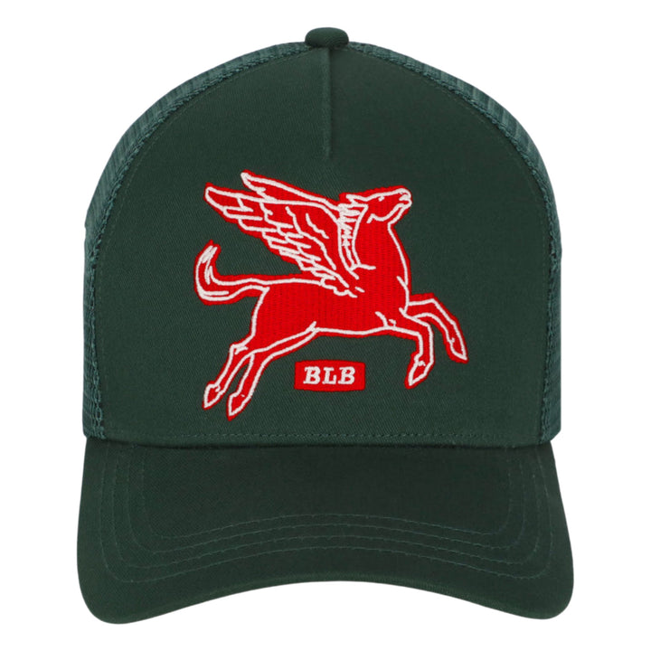 Aplique Pegasus en rojo y logotipo BLB en fieltro frontal.