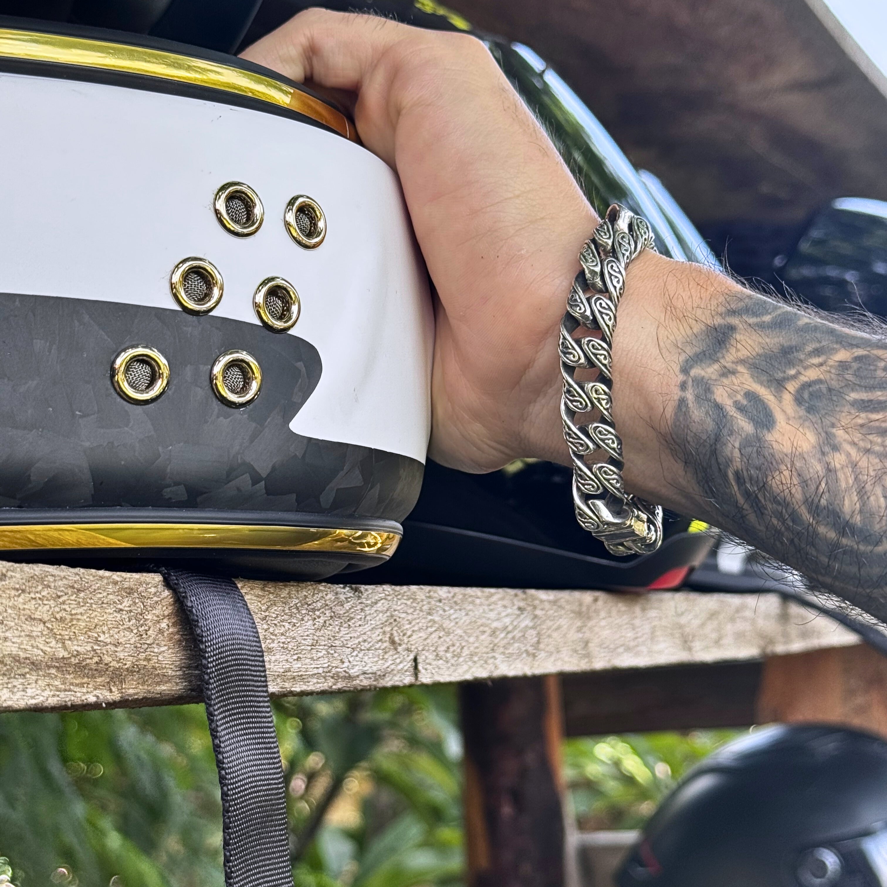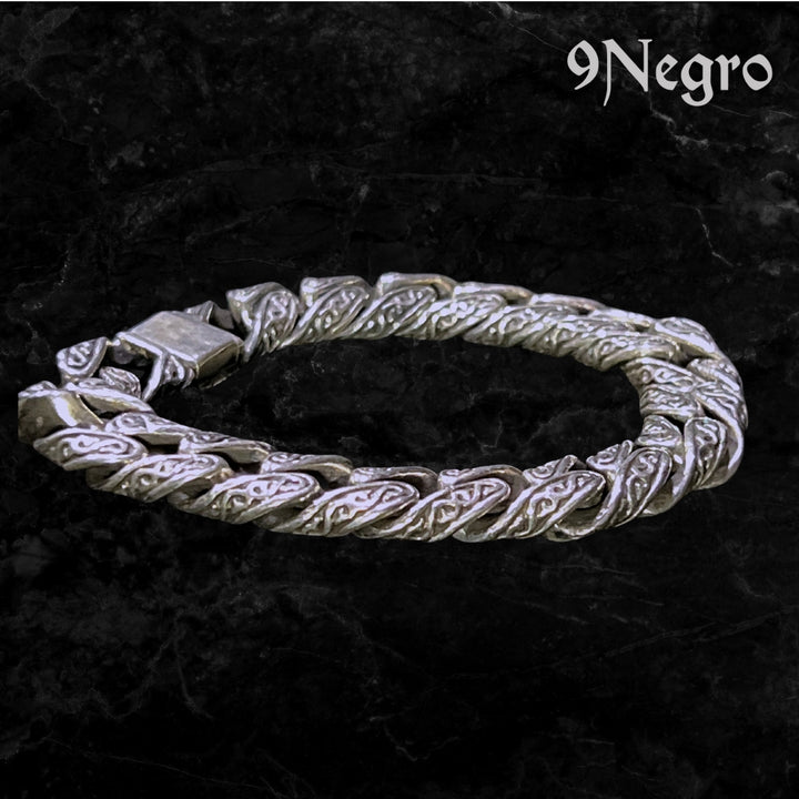 Forjada con alma guerrera, la Vikingo 96 está inspirada en la rudeza, el honor y la fuerza de los clanes nórdicos. Cada eslabón está meticulosamente grabado con símbolos que evocan historias de conquista, libertad y resistencia.