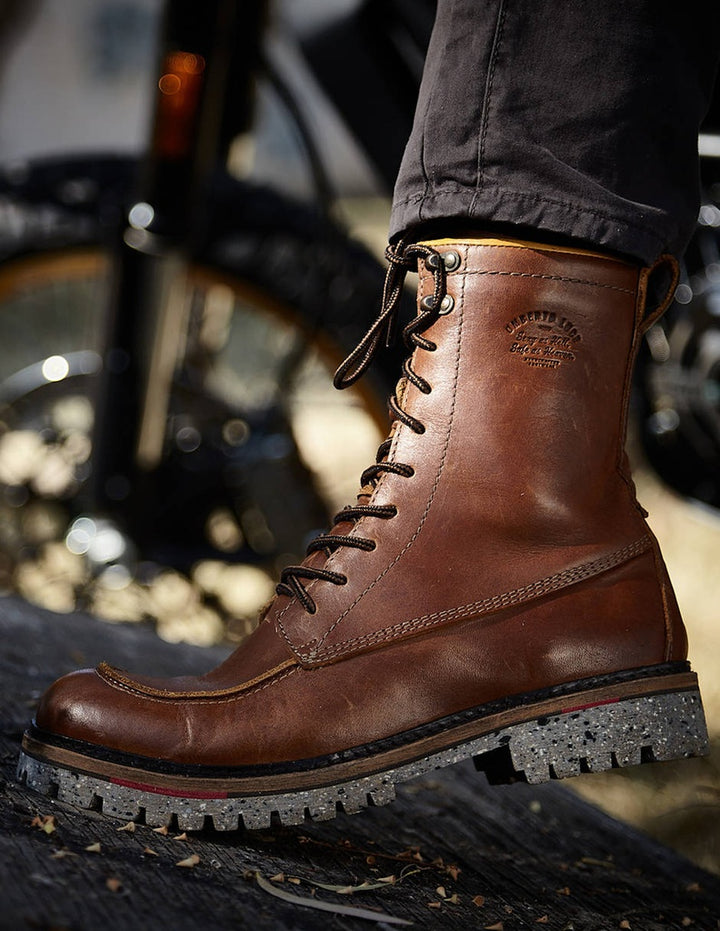 Explora la protección definitiva con las botas y tenis para motociclista UMBERTO ˣ LUCE ULˣ SPECIAL RIDER, diseñadas tanto para motociclistas experimentados como para aventureros diarios. Están hechos de piel curtido vegetal ecológico, cuentan con forro de res antiolor y ultrasuave, y están reforzadas con costura de seguridad lockstitch. Equipadas con protección en el tobillo D3O®, suela de hule antideslizante y alta resistencia, y ofreciendo una garantía de por vida, están construidas para durar y proteger en cualquier condición
